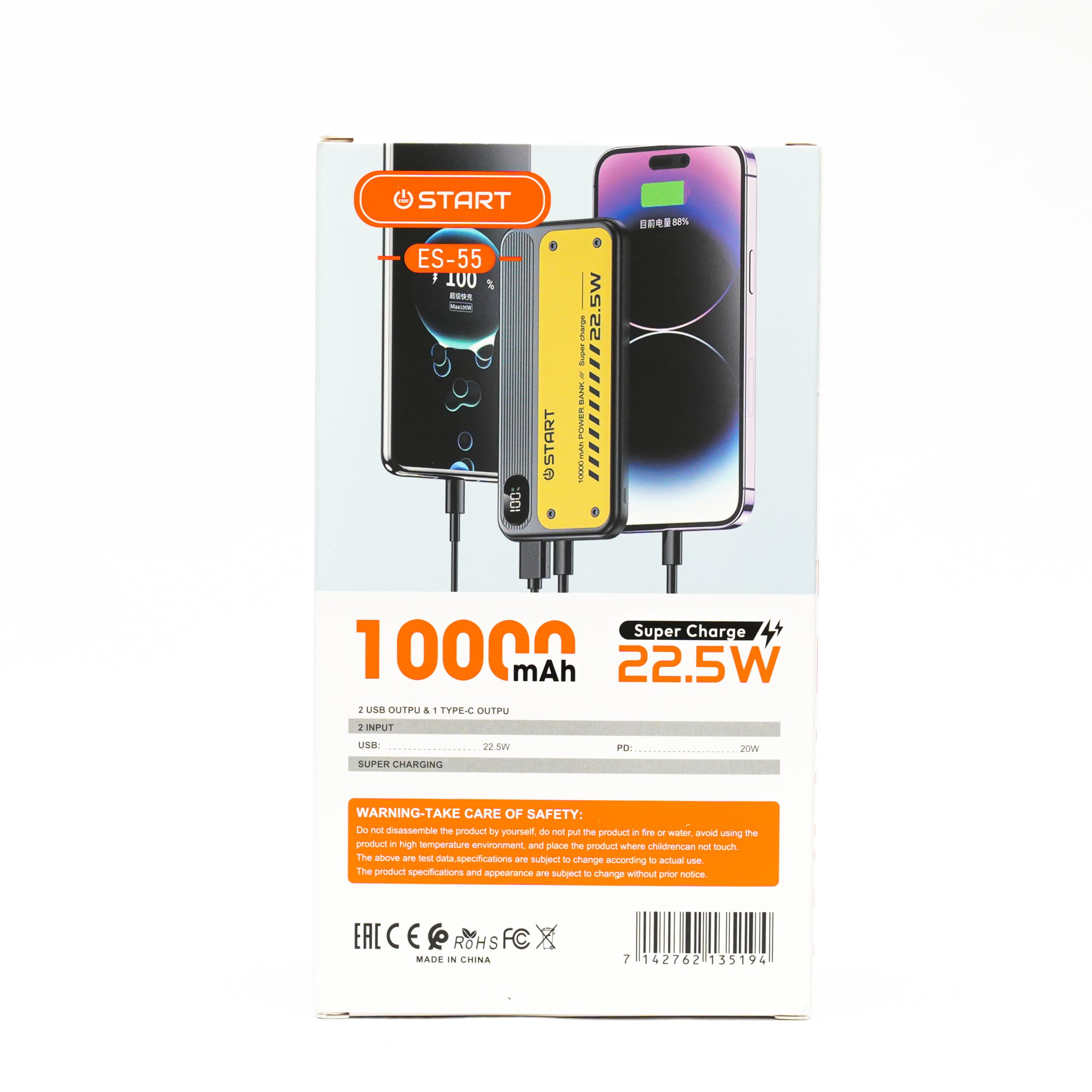 يأتي START ES-55 بسعة قوية وتقنية الشحن السريع بقدرة 22.5 واط لتضمن شحن أجهزتك في أقل وقت ممكن بكفاءة وأمان.
