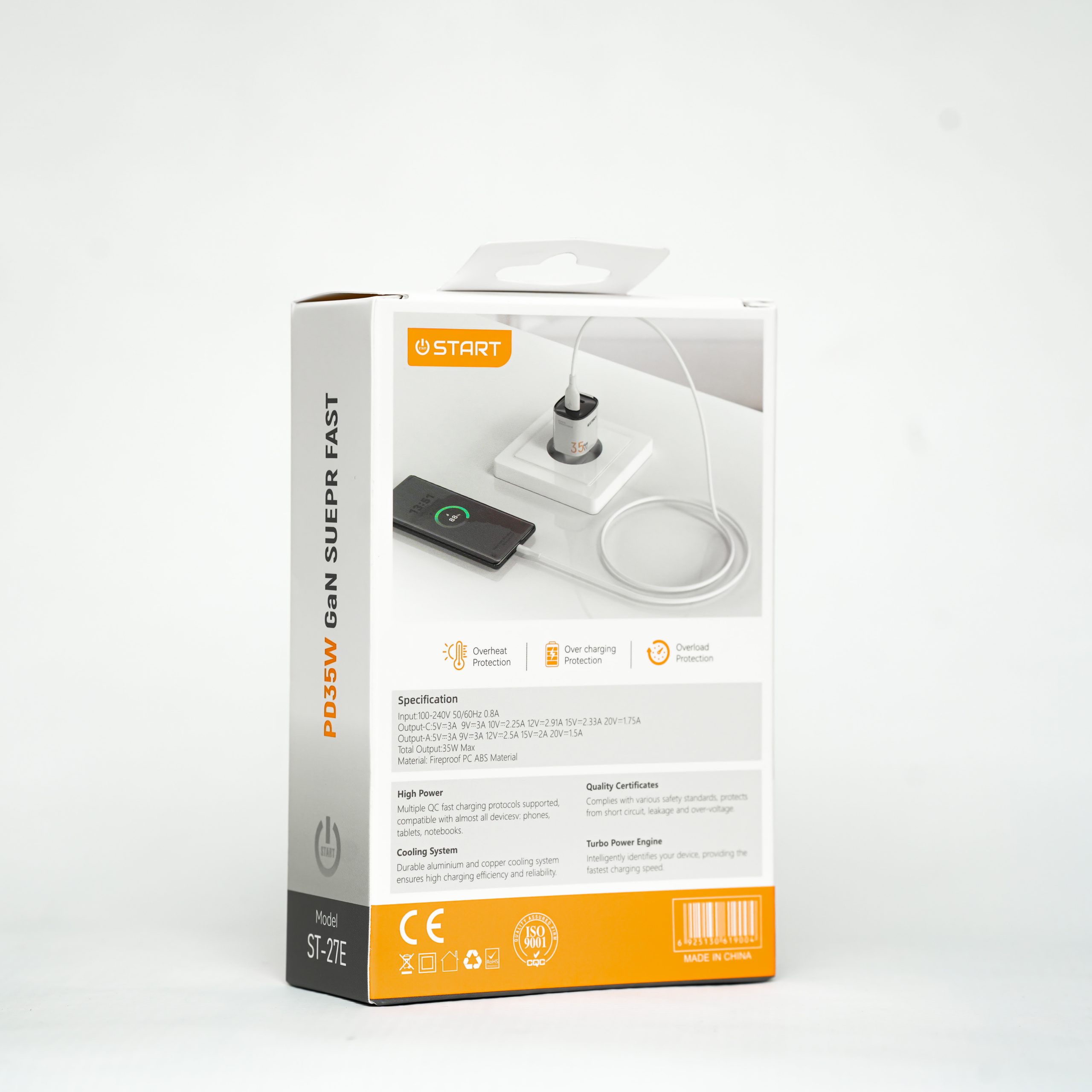 مع START ST-27E TC، استمتع بشحن فائق بقدرة 35 واط عبر منفذ Type-C مصمم ليمنحك أداءً مستقرًا وسريعًا في كل مرة.