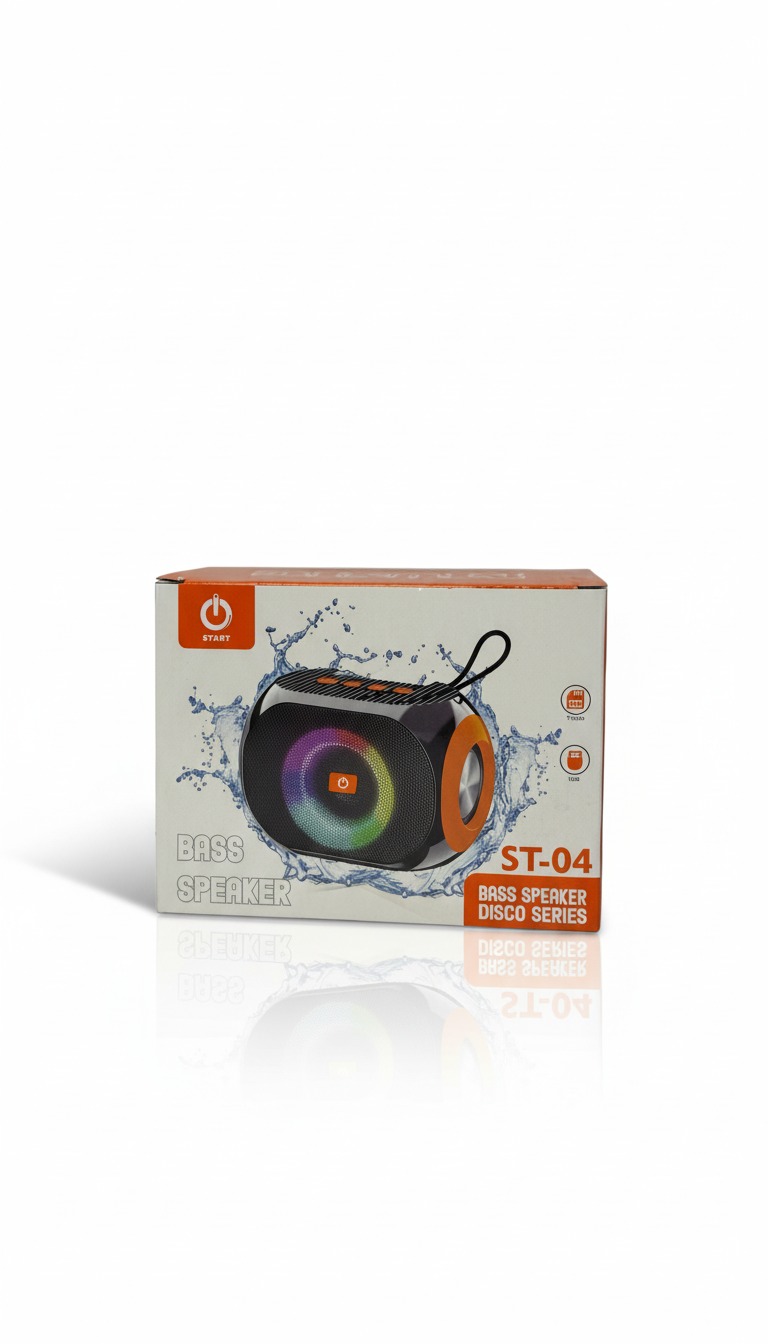 سماعة START ST-04 من فئة Bass Speaker – Disco Series مصممة خصيصًا لعشاق الصوت القوي والإضاءة الحيوية. تأتي بتصميم عصري مزوّد بإضاءة LED دائرية تضيف أجواء حماسية في الحفلات والتجمعات.