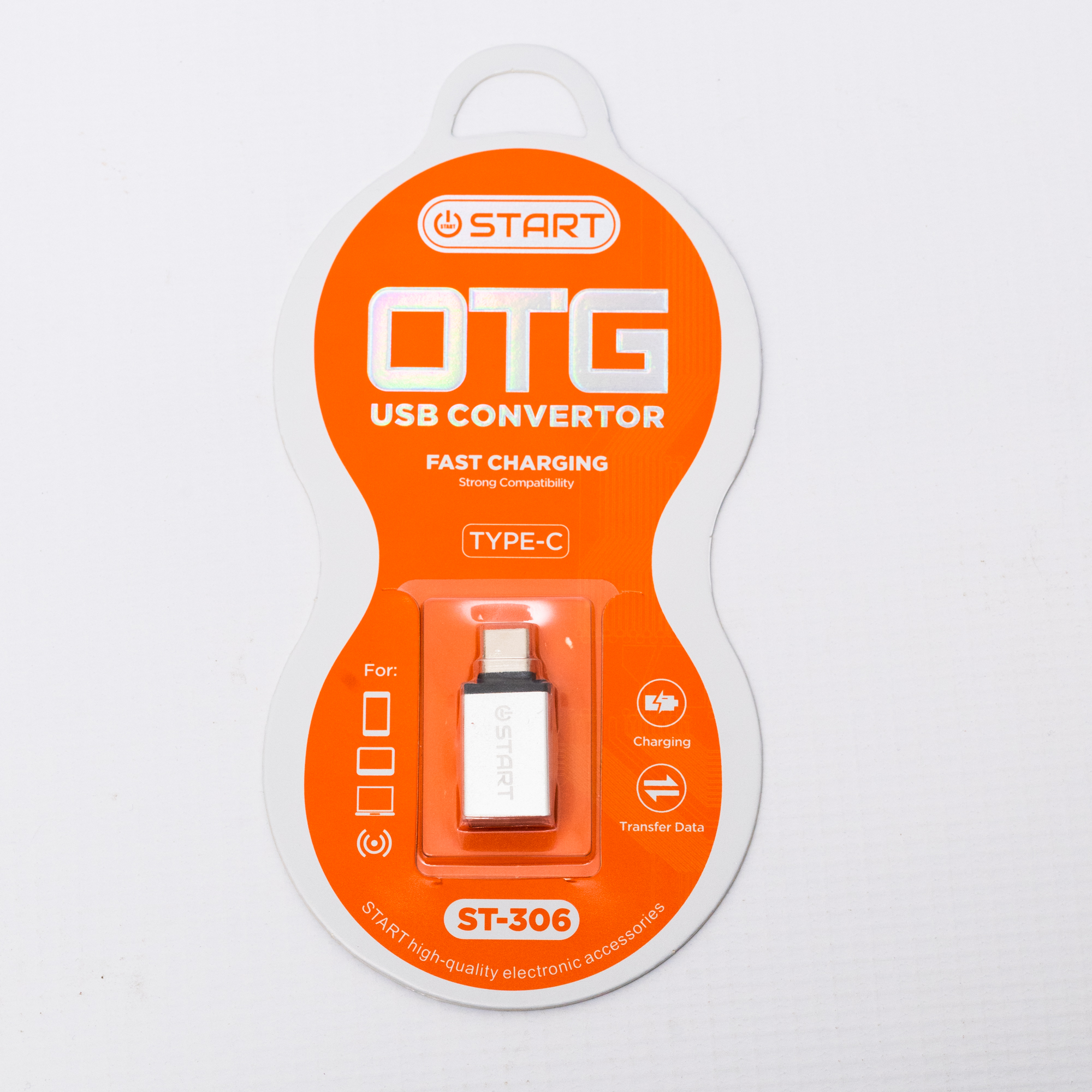 وصلة **START OTG TC** تتيح توصيل الفلاشات والأجهزة الخارجية مباشرة بهاتفك عبر **Type-C**، بخامة قوية وتصميم صغير، مع **ضمان سنة كاملة** من START.